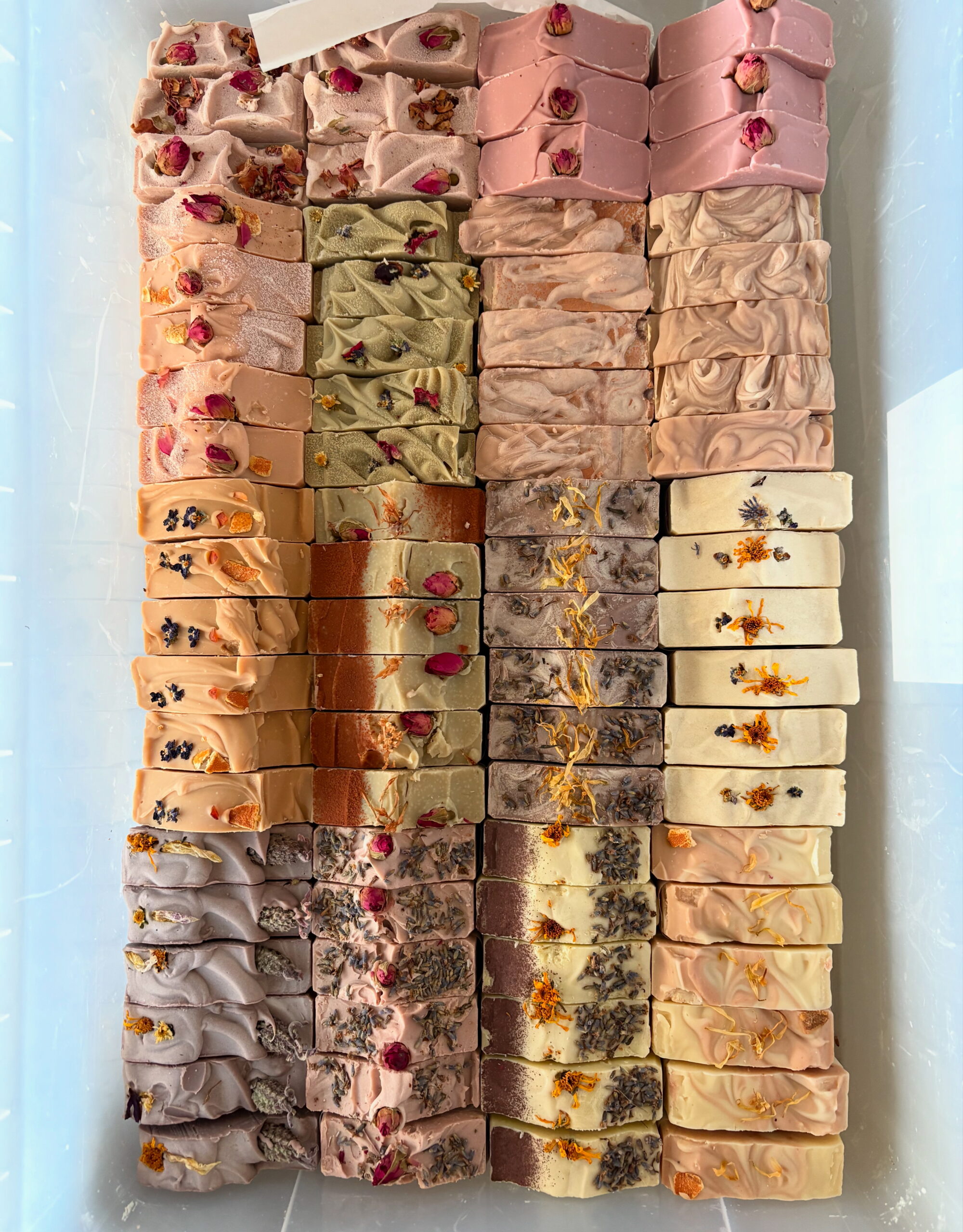 You’ll be able to smell the soaps before you even open the box. And then when you open, a beautiful array of colour and texture will make you smile. It is all about the love!